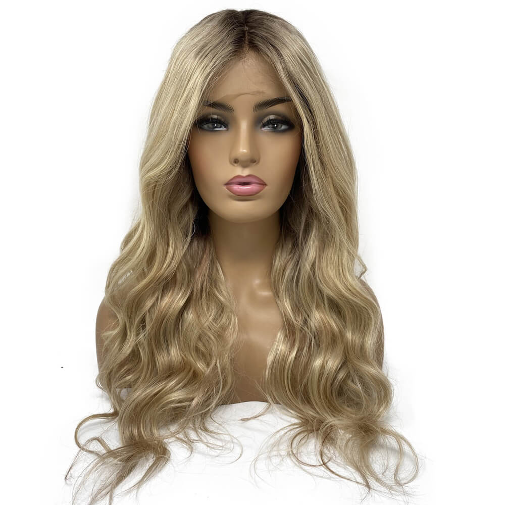 This custom balayage, blonde wig is made out of ALL VIRGIN Eurasian body wave hair, which is a top selling hair texture; due to its versatility of coloring. This texture has gorgeous volume when worn in its natural state but does very well when styled as desired.