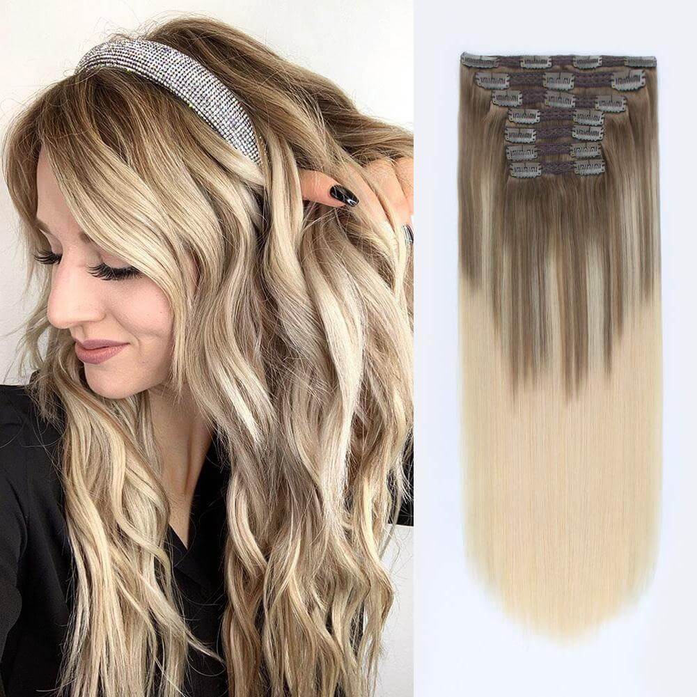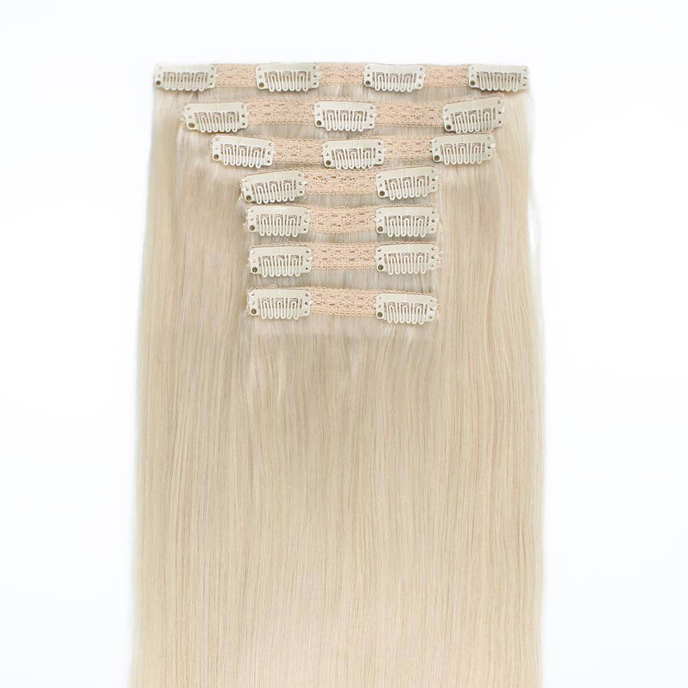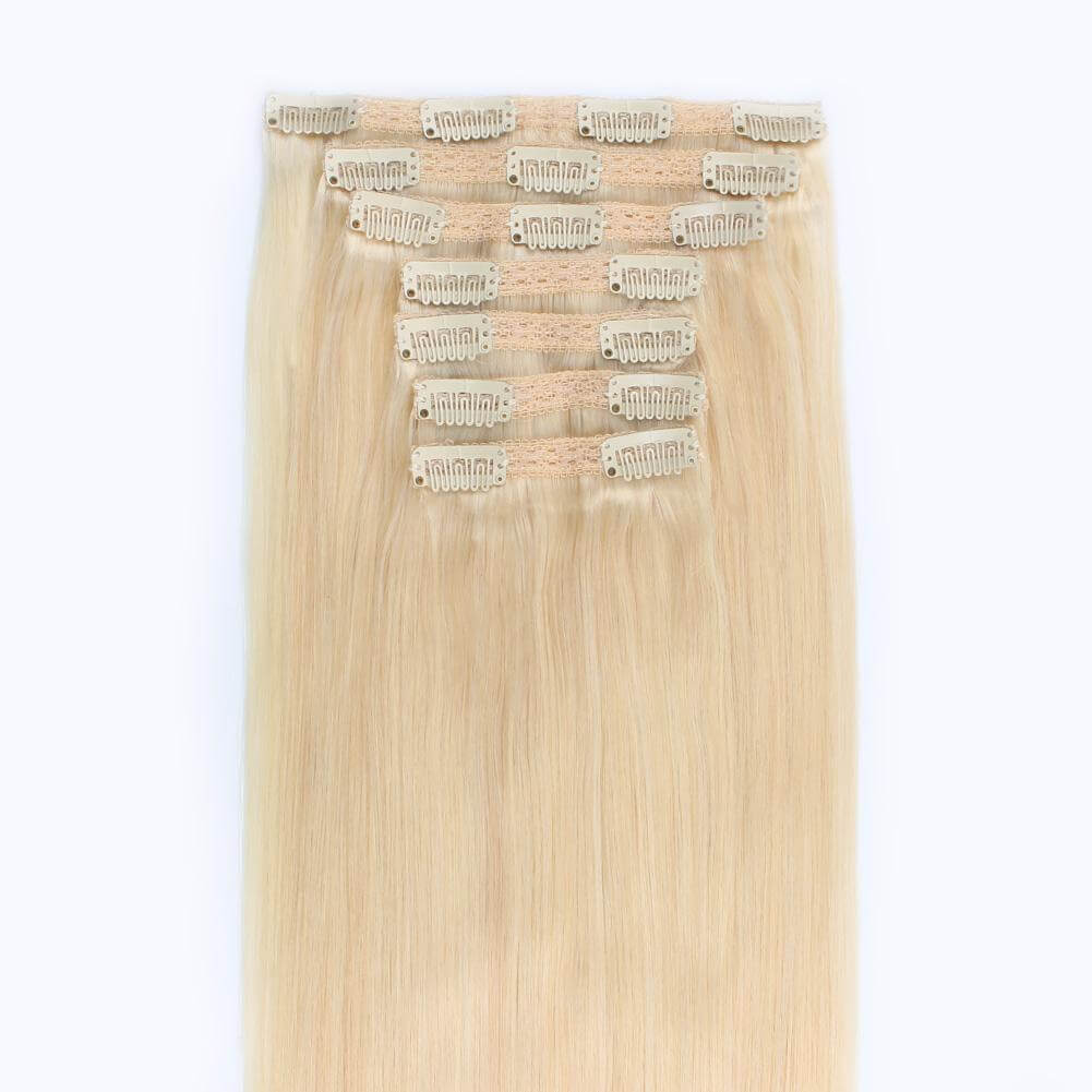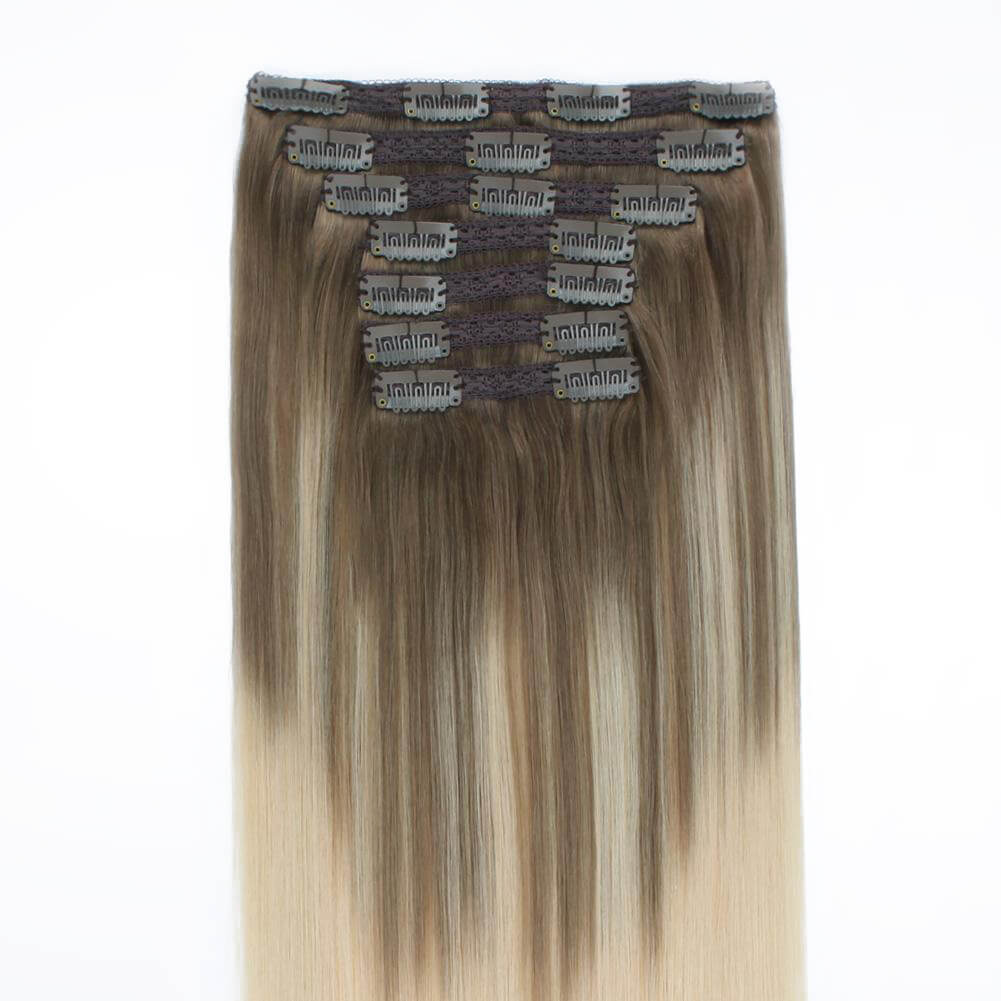 Clip-in hair extensions are a quick and easy way to add length, volume, and elegance to your life. The clips allow for easy placement and seamless style that's lightweight and fun to wear. Our clip-ins are hand-crafted from Remy human hair and will outperform other cilps up for the challenge.