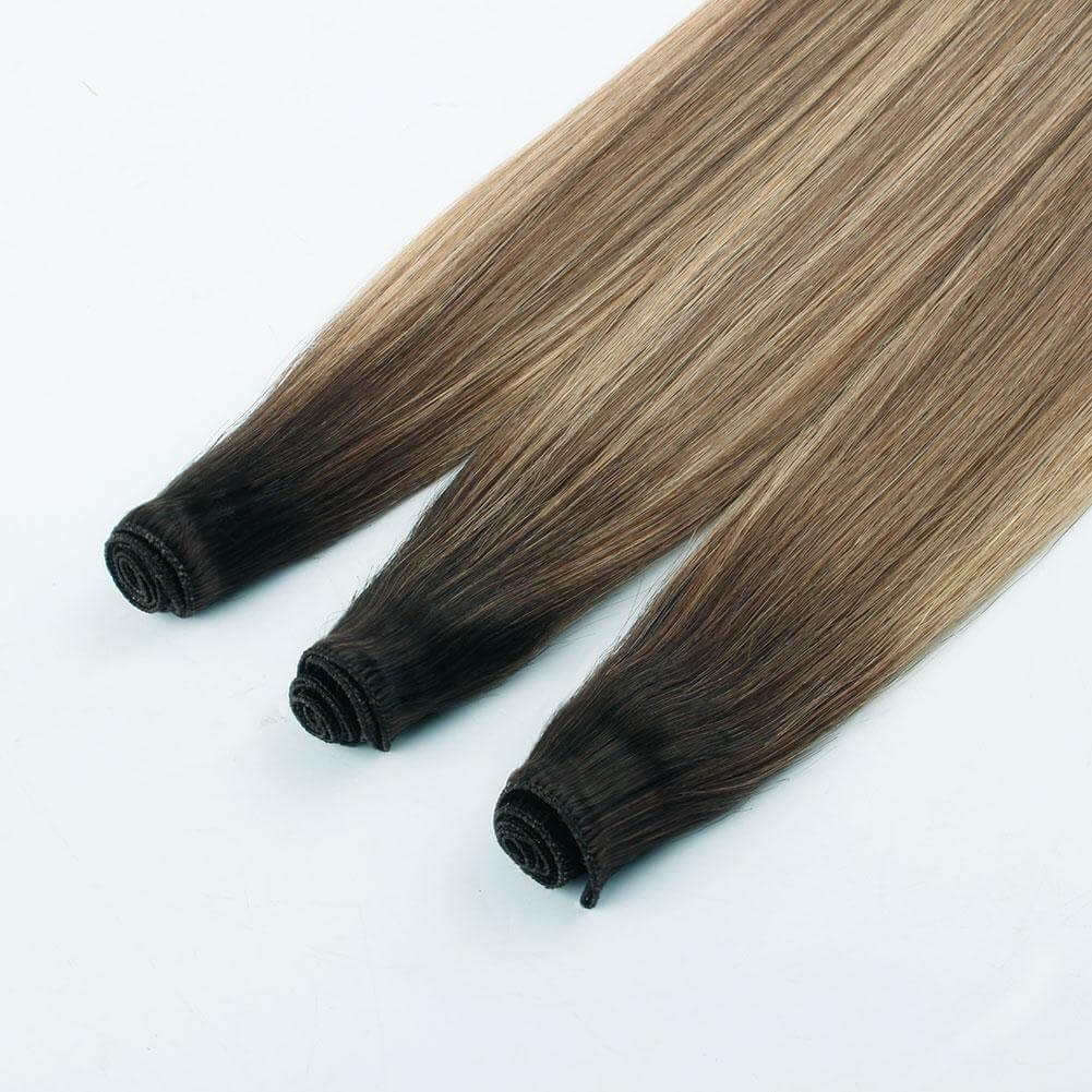 Hand-tied wefts are the thinnest wefts that are used for the Beaded Rows application method available to use on hair types, especially thin or fine hair due to the ultra thin weft design. The hand-tied weft is a super flat weft that can be used to bead in, sew in, or glue in for instant transformation, this method is 100% non-damaging, and the weft is strong and durable to reuse many times.