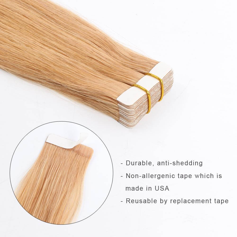 LuxuryYuan Soft Straight #27 Color Hair Blends Rose And Golden Undertones, 100% Remy Human Hair Tape In Extensions Instantly Transform Your Hair And Allow You To Feel Your Most Confident.