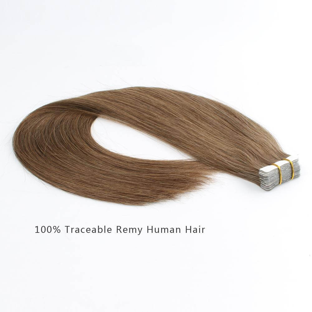 LuxuryYuan Chestnut Brown Tape Ins Are Made With The Finest Quality Hair, 100% Remy Human Hair. Available In The Widest Range Of Colors And Length. Free Shipping For All Over The World.
