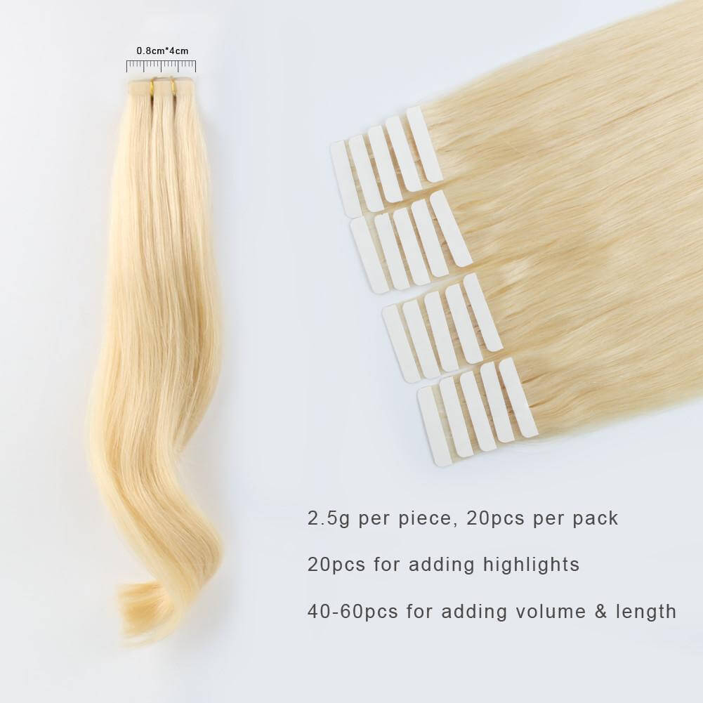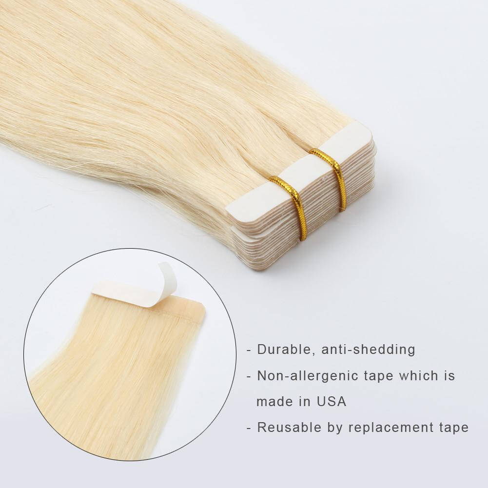 LuxuryYuan Fast Free Shipping Light Blonde #613 Color PU Tape In Hair Extensions, Imported White Tape Can Last Longer Lifetime, Can Be Reused, Quick & Easy Application, 14-22 Inch In Stock.