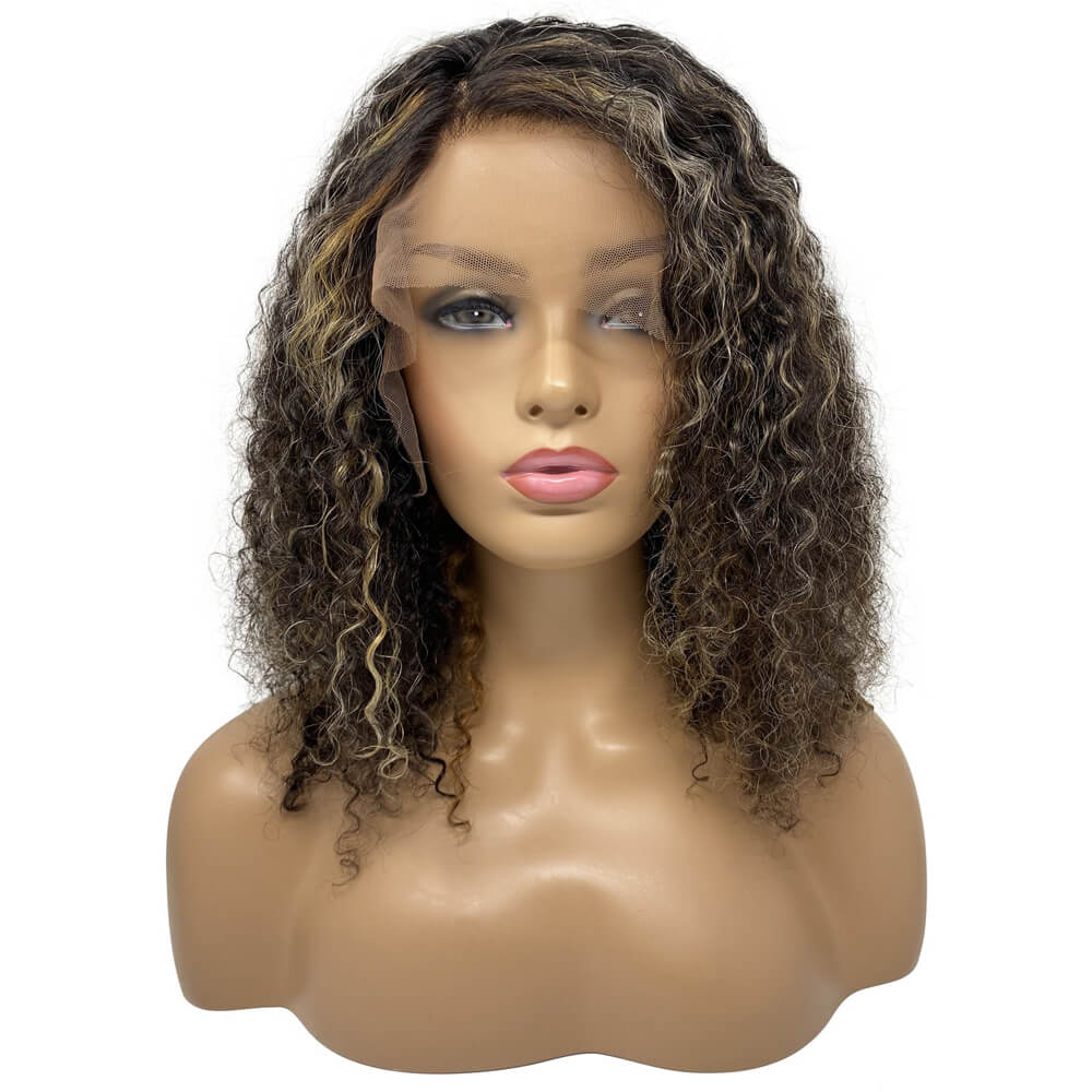 This custom-colored, blonde highlighted wig is made out of VIRGIN Malaysian Curly hair, which is one of our top selling hair textures; due to its density. Its texture has gorgeous volume when worn in its natural state, with proper care and maintenance.