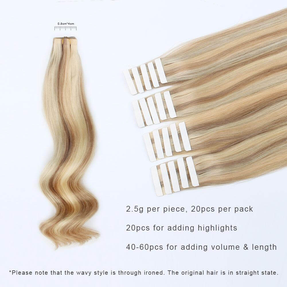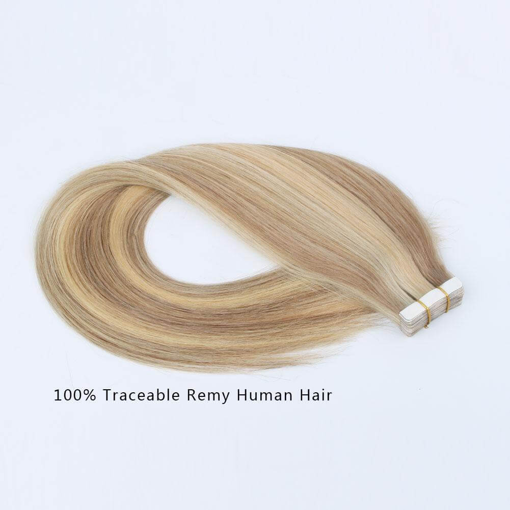 Remy Tape-In Hair Extension P #10/#16/#613 Golden Brown Highlights Blonde
