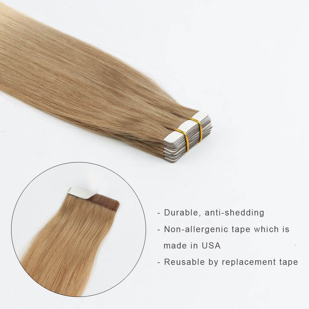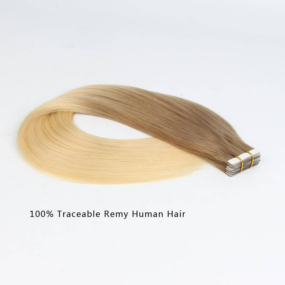 LuxuryYuan Ombre Blonde Tape In Hair Extensions, Premium Remi Human Semi-Permanent Hair In Fashion Color.