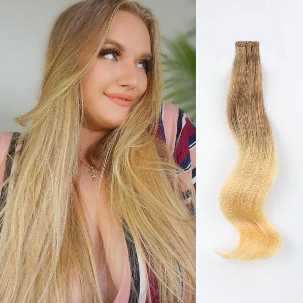 Remy Tape-In Hair Extension T#10/#613 Medium Golden Brown Ombre Beach Blonde