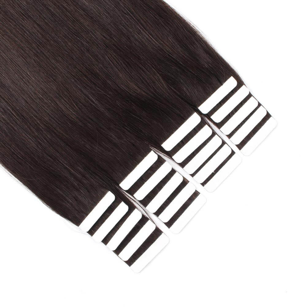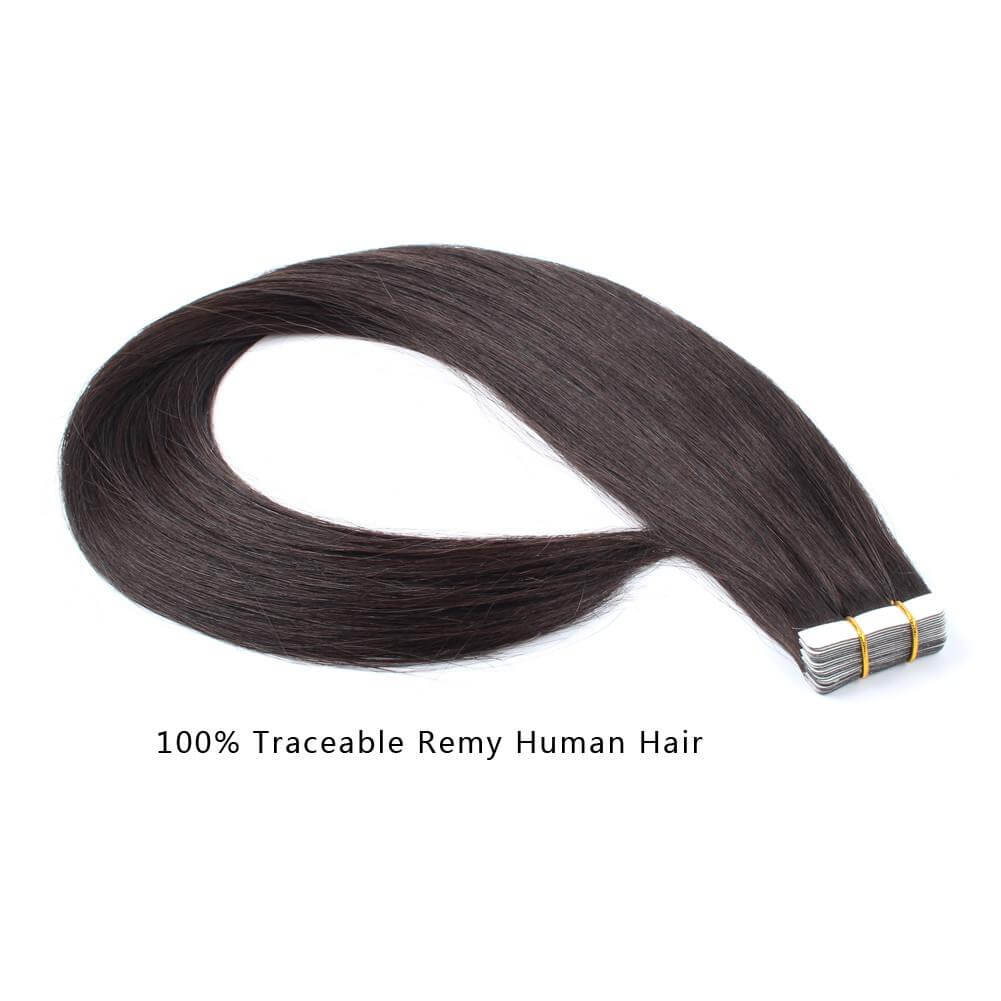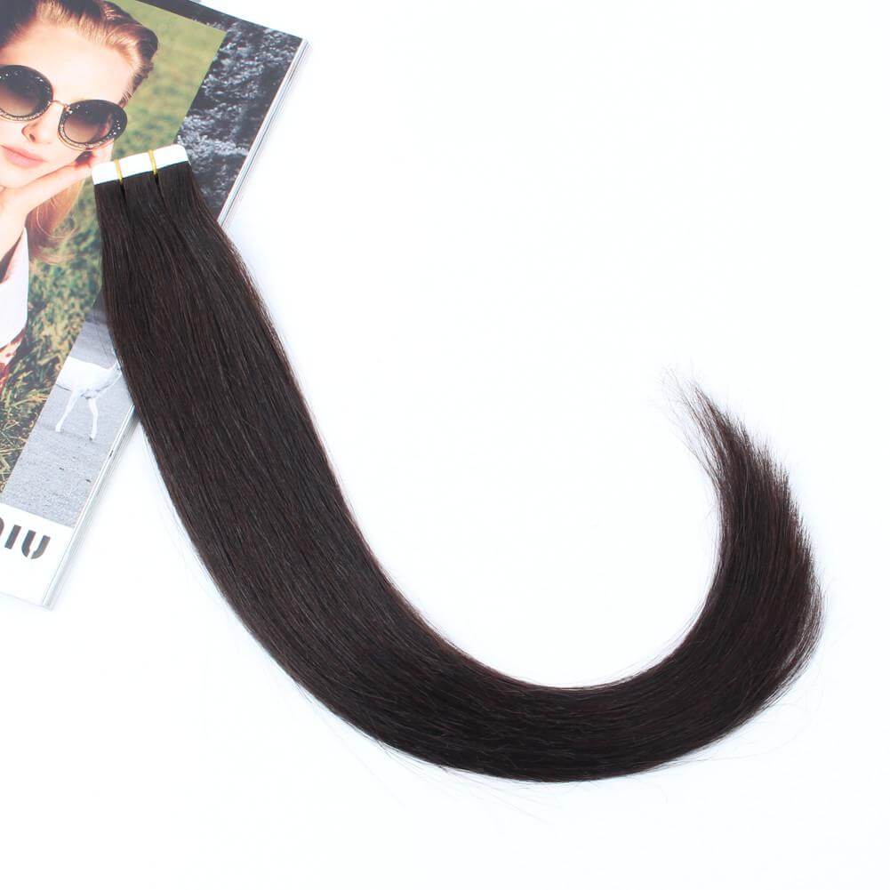 LuxuryYuan Off Black 100% Human Pure Remy Tape In Hair Extensions With Professional Grade Adhesive, Blend Well With Your Own Natural Color Hair. Order More, Save More.